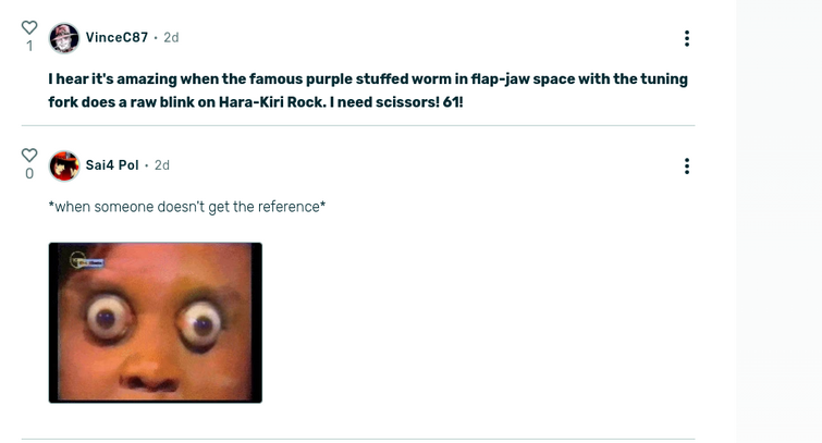 I hear its amazing when the famous purple stuffed worm in flap-jaw space with the tuning fork does a raw blink on Hara-Kiri Rock.